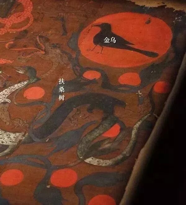帛画的内容可以分为上、中、下三部分,分别描绘了汉人对天堂、人间和地下世界的想象,绘有日月、金乌、蟾蜍、猫头鹰、天门守卫者、飞天、墓主人、巨鲸等。