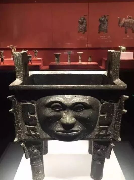 此鼎形制雄伟,在装饰上以人面为饰,是目前全国唯一以人面纹为饰的青铜鼎。