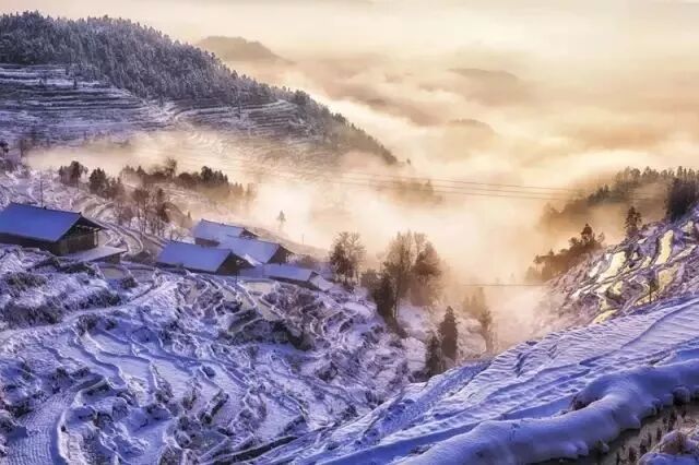 冬天,紫鹊界的冬天在以前,无疑是最美的,大雾弥漫,雪花飘飘,白雪皑皑,被银装素裹的梯田更为美丽,犹如仙境那般。
