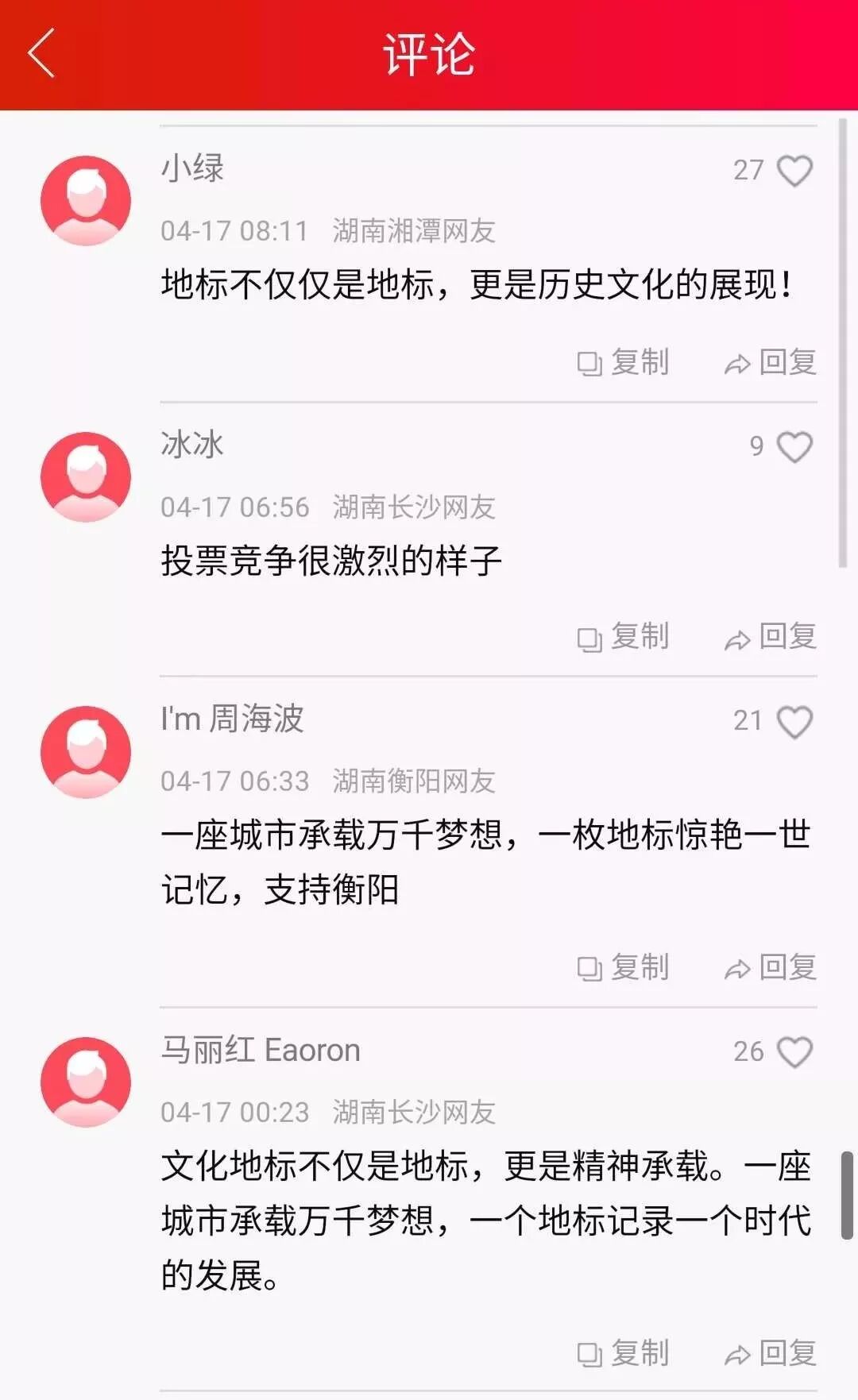 网友纷纷留言,为自己心中的文化地标加油打call