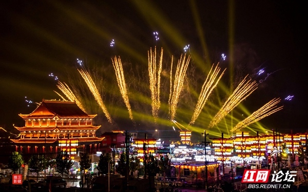 The grand fireworks show opened the prelude to the trial opening of the Jianglu Ever-bright City, attracting many tourists to take photos, creating a lively atmosphere.