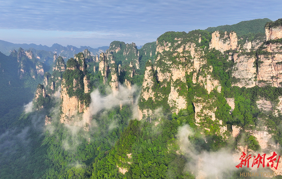 The photos taken on June 3 show the magnificent Ten-mile Gallery Scenic Spot in Zhangjiajie National Forest Park after rain, with clouds and mist flowing among peaks.