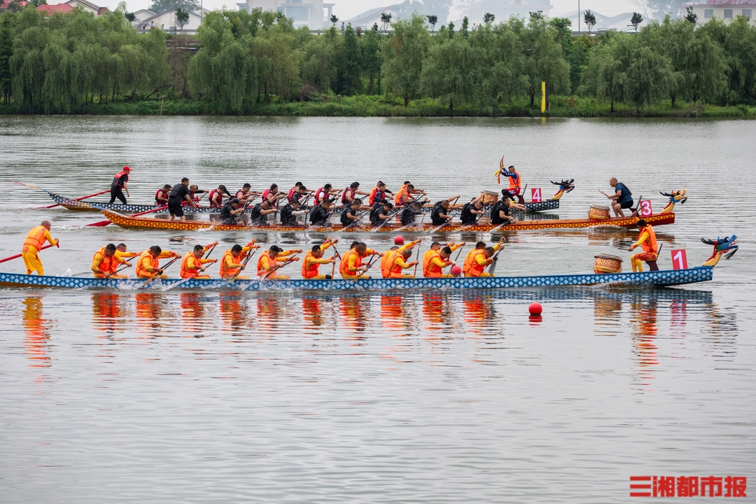 The China Miluo River Dragon Boat Super League kicked off on that day, with 20 teams competing on four traditional 500-meter straight tracks.