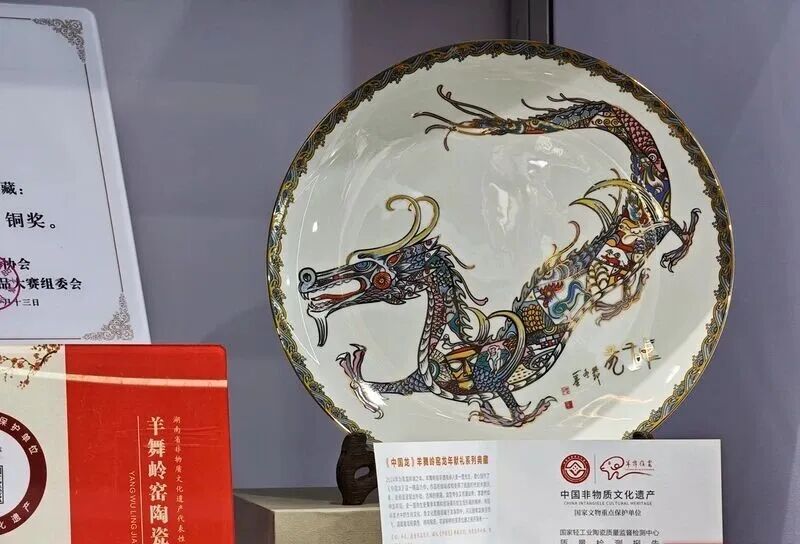 湘绣展台上,经典双面绣与潮流文创产品并列陈列,刺绣图案跃上日常用品,走入现代生活;湘瓷区则集中展示了醴陵釉下五彩瓷的经典之作与创新设计,既有荣获2024中国特色旅游商品大赛铜奖的《中国龙》羊舞岭窑龙年献礼系列典藏,还有融入新材料的陶润汇现代创意系列陶瓷,一件件精美瓷器,静静诉说着泥土与火焰的艺术蜕变。