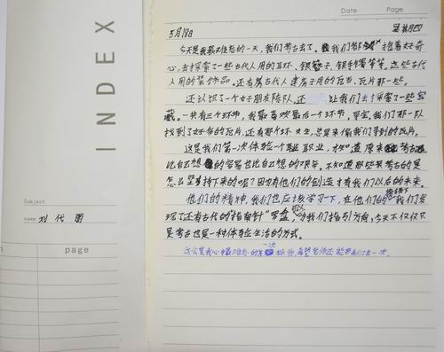 活动结束之后,同学们还写下日记,记录下了在考古活动的一些感受、体会和对考古的一些认识,基本知晓了考古不是挖宝,也不是盗墓,而是一门研究人类古代活动的学科。
