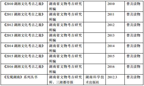 我所十分重视考古成果的普及和推广。早在1999年,我所就出版了一本宣传湖南重要考古发现的普及读物《湖南考古漫步》。从2008年起,为了让社会大众及时了解湖南的文物考古工作情况,我所决定每年编辑一本《湖湘文化考古之旅》,将每年湖南考古的成果向社会及时公布。《湖湘文化考古之旅》分为调查勘探、考古发掘、遗产保护与利用、科研成果、信息与交流、共建和谐家园等几大板块,通过文字和海量图片,将湖南考古工作向读者娓娓道来。整本书图文并茂,通俗易懂,使湖南考古工作者科学严谨、吃苦耐劳的生动形象跃然于纸上,可读性极强,对于揭开考古的神秘面纱,让公众了解真实的考古是什么,了解湖南的古文化,唤起公众参与文化遗产保护的热情具有极大的推动作用。同时由于该书发表的都是当年的最新考古发现,具有很强的资料性,因此也可以作为资料进行交流,便于各地考古同行们及时分享成果,达到相互学习,取长补短的目的。
