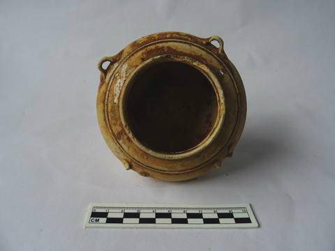 第⑧层:黄色沙质粘土,分布在剖面中部,较致密,包含少量瓷片,厚0-40厘米,采集有平底杯、四系罐残片。