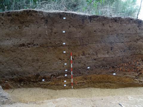 第⑨层:灰白色沙质粘土,致密,纯净,厚25-50厘米,该层表面有少量瓷片,应为早期窑业活动面。