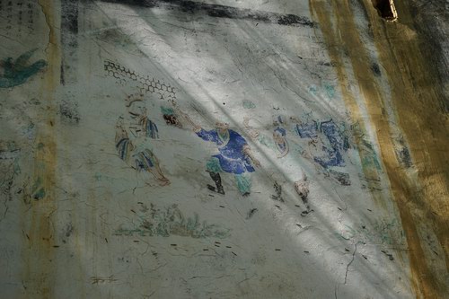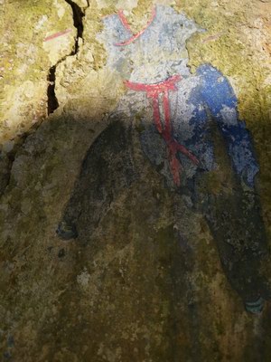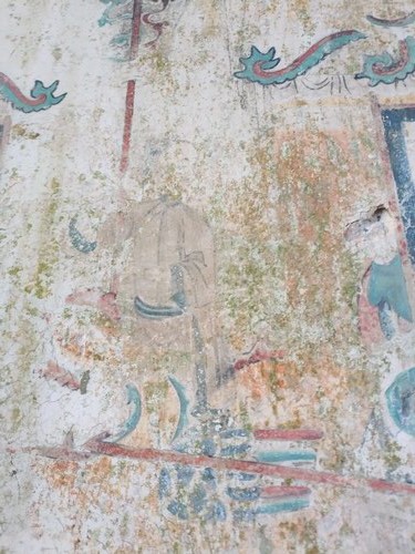 5、壁画颜料褪色、脱落。(图十三、图十四)