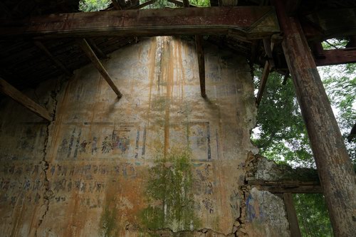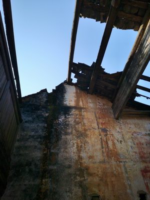 2018年11月-12月,省文物考古研究所工作人员对永州道县境内的十余处家庙建筑进行了系统的调查工作。通过调查发现,家庙始建年代在清中晚期至民国初年,所有的家庙建筑上均有彩绘壁画,除一处建筑在数年前经村民集资修复仍在使用外,其余的家庙建筑均已废弃,建筑结构有不同程度的损坏。(图一、图二)