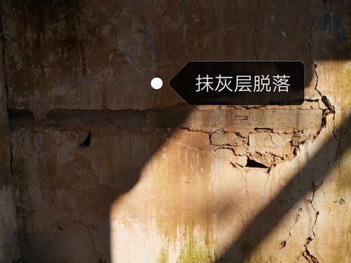 4、石灰层裂隙、空鼓、起翘、脱落。(图十、十一、十二)