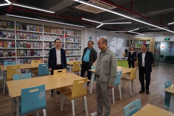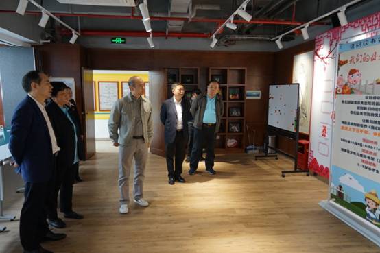 省厅对省少儿图书馆一楼至六楼的所有开放区域和业务工作场地进行了逐一检查指导,重点查看了二楼文学借阅室、小剧场,三楼报刊借阅室、国学馆等区域,了解了开放情况、读者情况、活动情况及消防安全设施等相关情况。金铁龙馆长详细介绍了各开放区域的相关情况。在三楼读者作品展示空间,龚处长对读者的绘画作品表示赞赏。在五楼智慧教室,领导们还一起观看了智能设备的演示和操作。