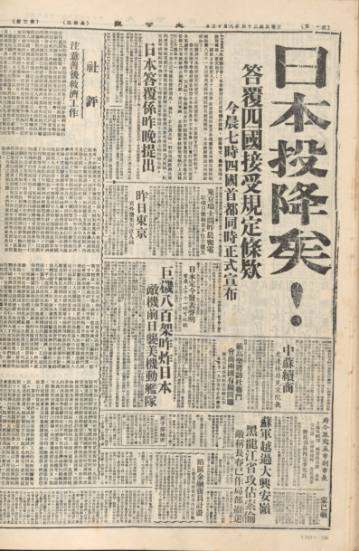 展览围绕“胜利的来临”“胜利的欢呼”“胜利的见证”“胜利的成果”四大版块精选十四种馆藏珍贵民国老报纸,重点展示日本宣布接受《波茨坦公告》及无条件投降的首批报道;聚焦湖南本地庆祝抗战胜利的盛况,体现地域特色和人民的喜悦之情;展现战后国际国内对日本战犯的追责、对日处置决策以及中国借此收回国家主权、大国博弈的历史进程。