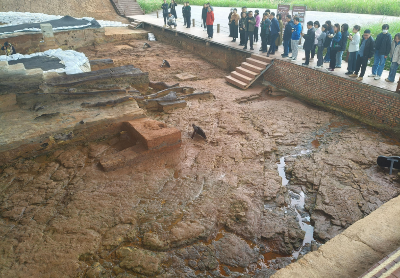 26日下午,与会代表到资阳濛溪河遗址考古发掘现场进行实地考察(图三)。濛溪河遗址群是2024年度全国十大考古新发现之一,该遗址群的发现填补了东亚现代人起源演化研究的关键空白,并提供了罕见的全要素旧石器时代遗存。‌濛溪河遗址1号点位距今8~6万年,累计出土动植物化石和石器等遗存超过28万件,丰富的动植物遗存展现了旧石器时代中期人类的采集渔猎经济和对动植物资源的认知和利用能力。
