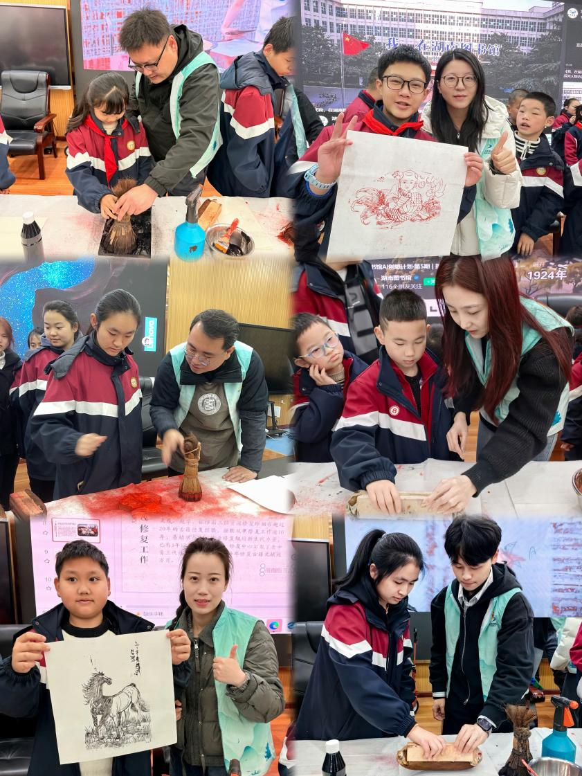 3月9日,湖南图书馆文旅志愿者服务队携带“匠心湘传”品牌,以雕版印刷课堂传承湖湘文脉。讲解环节,古籍修复师化身“时光引路人”,剖析千年工艺之精妙,展示岁月沉淀的工具,让历史在讲述中“活”起来。体验环节中,孩子们在老师指导下亲手执刷、敷纸、拓印,在实操中感受年画与古籍的雅韵,从“文化接受者”转变为“文化参与者”。一刷一印,传递的是温度;一脉一承,播种的是文化。