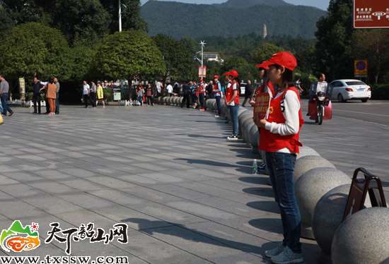 “小朋友,水池边危险,不要站在栏杆上”、“你好,行人请往这边走,小心车”“你好,寄包请往这边走”……志愿者们耐心引导着参观的游客。领票点在哪里?洗手间怎么走?景区内能住宿么?陌生的游客们每天都会询问这些问题,志愿者们早已不新鲜,但还是要不厌其烦的回答游客,有时候还要带他们到咨询的地方,同时,志愿者们还在核心景区内,设立了茶水供应点,为过往的游客提供茶水服务。志愿者没有固定的休息时间,全凭同学内部自己协调,午餐也只能在现场解决。张同学告诉记者,一直要忙到下5时,她才和同学才收拾东西返回学校。