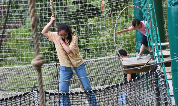 继岳阳天岳幕阜山景区解除封园重新开放之后,14日上午,景区内“天岳飞龙”丛林探险乐园举行开园仪式,并将于15日面向公众开放。