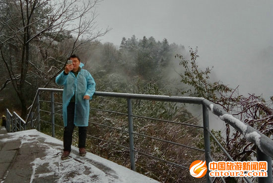 据了解,当天武陵源的降雪从上午9时开始,主要集中在核心景区海拔高的地带。截至发稿时止,景区雾气很浓,降雪仍未停止,山顶、树枝、路上已经是白白的一层,一些观景台不时有游客以大雪为背景拍照留影。当天上午,武陵源交警部门已经全员上岗,加强了重要路段的执勤力度,目前袁家界至乌龙寨环保车畅通,黄石寨索道、杨家界索道、百龙天梯等运输工具正常运行,景区游览秩序井然。