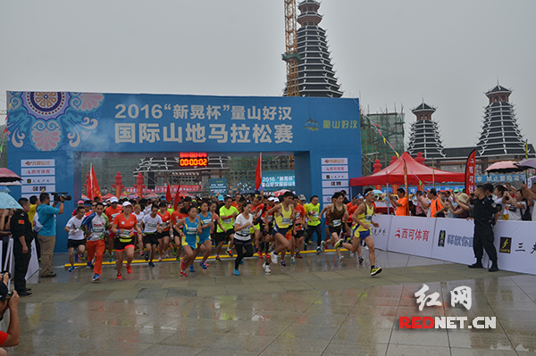红网新晃6月10日讯(时刻新闻记者 陈宗昊)今日,2016年“新晃杯”量山好汉国际山地马拉松赛在湖南省新晃侗族自治县举行,来自西班牙、墨西哥、肯尼亚,以及全国各地共1500余名运动员参赛。奥运射击冠军杨凌和游泳冠军钱红为本次大赛助阵领跑,比赛沿途超过2万群众观看,并为选手呐喊加油。