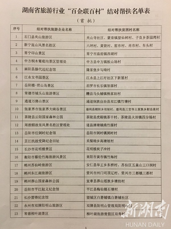 湖南旅游扶贫推动“百企联百村”对口帮扶