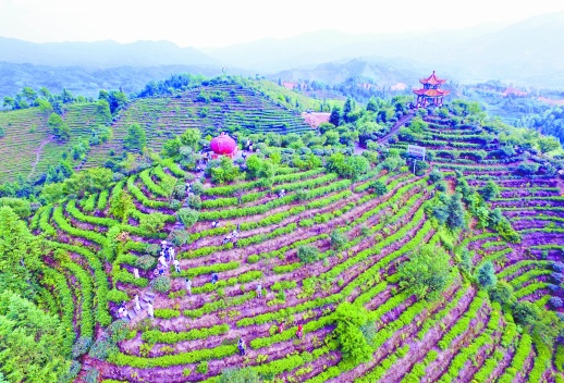 7月26日,桂东县清泉镇,万亩玲珑王茶叶观光园吸引大批游客观光、采摘。