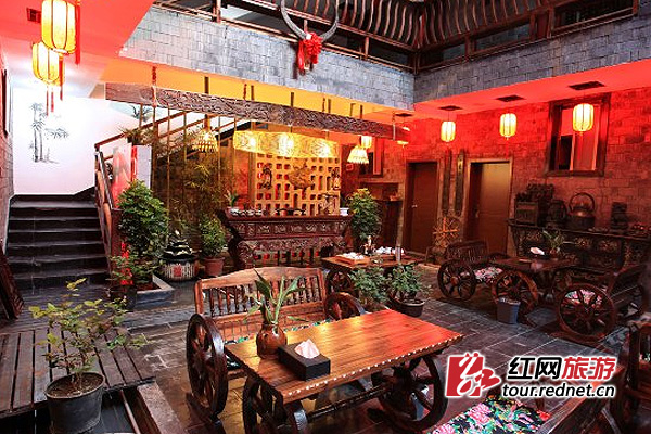 “悠然居”客栈是典型的中国传统建筑格局。