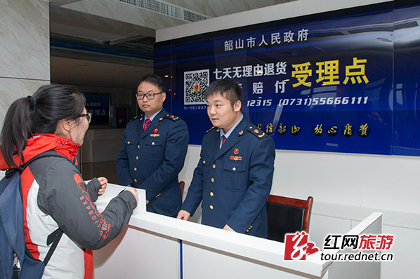 “七日无理由退货和先行赔付”的“韶山承诺”,也在今年5月铿锵落地,有如一颗“定心丸”,为韶山游客的旅程保驾护航。为了践行承诺,韶山市人民政府设立赔付基金,在核心景区的游客服务中心、毛泽东广场、毛泽东同志故居设置了现场先行赔付受理点,并开通了12315、55666111两条热线24小时接受投诉举报。