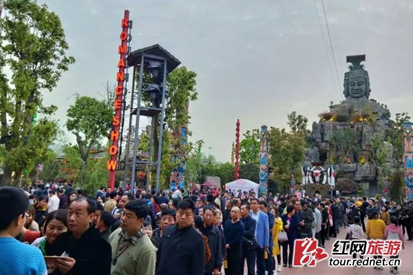 炭河古城景区内,去观看《炭河千古情》的游客排起了长长的队伍。节日期间,炭河古城及炭河里青铜博物馆共接待游客达13万人次。
