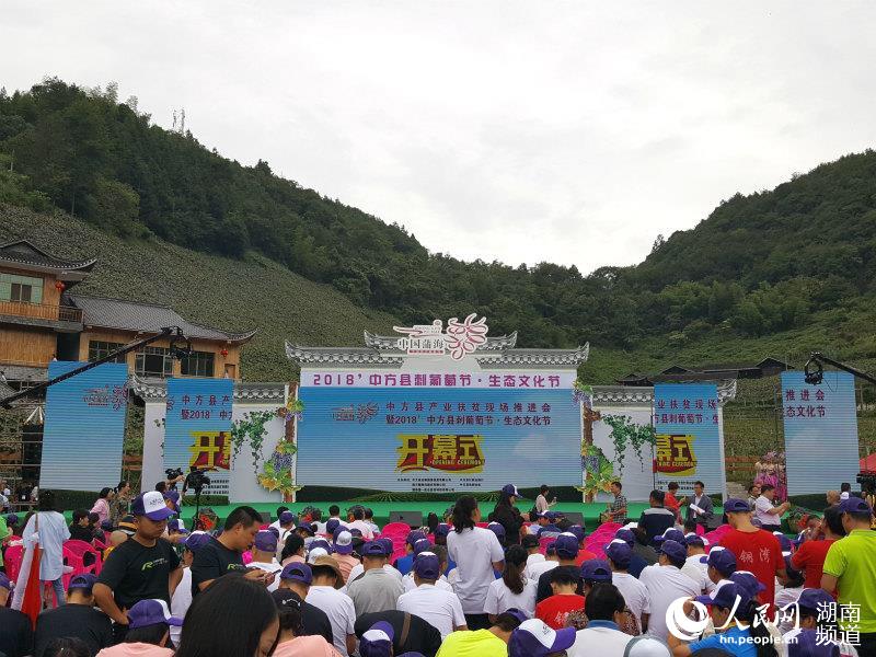 一架葡萄满院香,丰收颂歌赋诗长。9月8日,中方县产业扶贫现场推进会暨2018中方县刺葡萄节生态文化节在该县桐木镇大松坡村甜蜜开幕。亲子游园采摘、参加品酒音乐会、环蒲海登山比赛等极富刺葡萄特色的项目,让现场近万名游客嗨翻天。