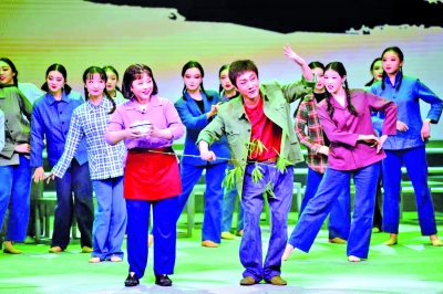 叶红(前排左一)在2020湖南戏曲春晚上表演花鼓戏《洄水湾》片段