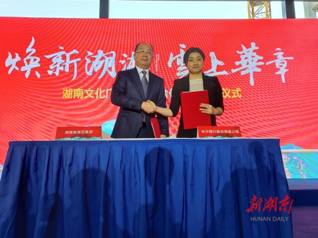 签约仪式上,长沙市芙蓉区政府授牌湖南文化广场为“湖南省演艺集团总部基地”;省演艺集团与长沙银行签订了全面战略合作协议,后者将为入驻湖南文化广场的企业打造银企合作平台。