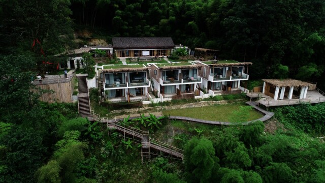 夏夜晚风轻柔,沿着张家界武陵源区协合乡林荫葱郁的盘山路,向宝峰山深处行进。大庸秘境民宿傍田而建,镶嵌于偌大的山坳。