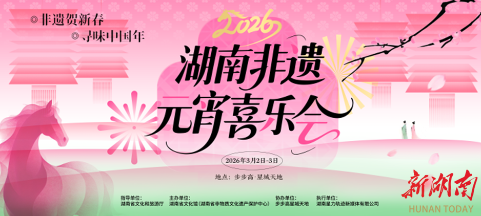 当金马踏春的蹄声叩响上元灯火,当千年非遗遇见时代的温度,今年元宵节(3月2日—3日),“非遗贺新春·寻味中国年——2026年湖南非遗元宵喜乐会”即将在长沙步步高星城天地举办,展开一幅流动的湖南非遗长卷。