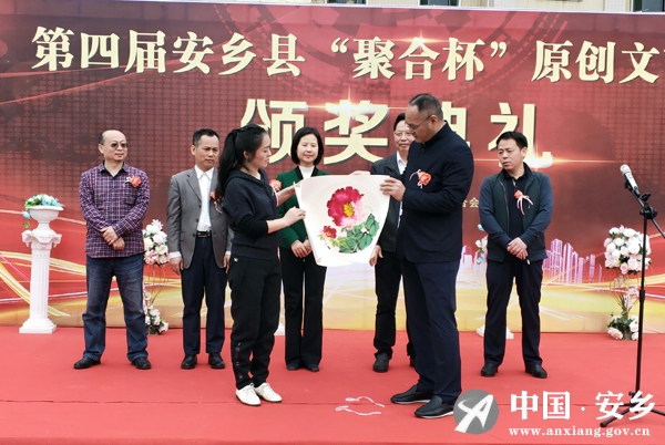 文艺花开别样红。4月30日上午,安乡县文学艺术界人士齐聚步行街广场,参加第四届安乡县“聚合杯”原创文艺奖颁奖典礼。常德市文联主席杨莉,副主席谢伟、周碧华及安乡县委宣传部、县文联等相关部门负责人出席颁奖典礼。