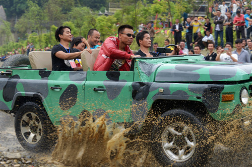 在徒步穿越夜郎大峡谷现场,800余名驴友爱好者,随着“开始”枪的打响,争勇穿越起来。夜郎大峡谷是当地正待开发的一自然景区,崖深200—300米,长15公里,谷底宽均不足30米,谷形呈“V”字形,跨越湘黔两省,崖内风景奇独,水幽、瀑妙,素有“三十里幽谷、三十里画廊、三十里世外桃源”之美誉。在穿越现场,驴友们尽情感受着大自然带来的鬼斧神工,被美轮美焕的自然景观深深吸引,早已忘却了这是比赛,也许他们是因不想为取得名次而留下遗憾。当天的活动中,最数惊险刺激的越野拉力赛。在凉伞镇冲首村里的不足10米宽河道上,汽车拉力在两岸3000多名侗族同胞的阵阵惊呼声中激情上演。200多台越野汽车极速定车、定点倒车、穿越河道……铺满大小卵石的河滩上,车友们为观众展现了让人惊奇的车技。
