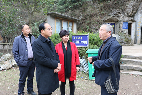 邵阳市副市长赵为济(左二)与白龙洞当地负责人交谈
