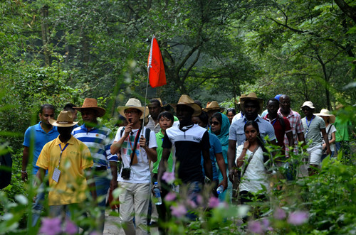 据7月30日张家界市武陵源区旅游部门统计,今年武陵源区入境游呈现大幅上扬的良好态势。1-6月,全区共接待境外游客超过39万人次,同比增长17.6%。图为非洲游客在核心景区游览。