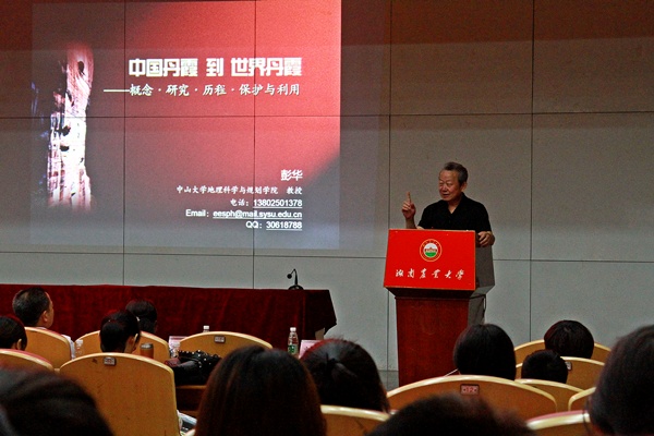 为迎接中国首个“文化和自然遗产日”的到来,6月6日,由湖南省住房和城乡建设厅联合“中国丹霞”世界自然遗产专业保护委员会共同主办、广东丹霞山管委会和崀山风景名胜区管理局协办的,“中国丹霞”进校园科普宣传推介活动首次在湖南农业大学校园举行。数百名大学生共同领略了彭华教授主讲的《中国丹霞到世界丹霞》科普宣传讲座。