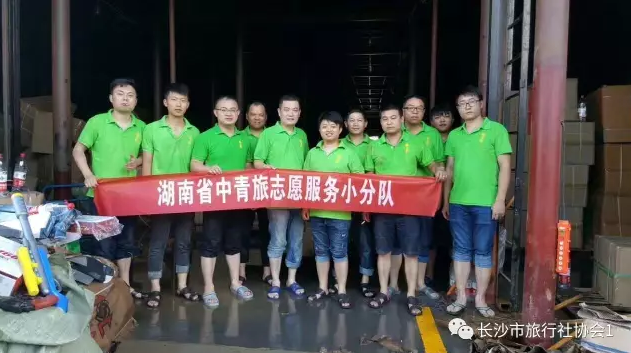 湖南省中青旅全体年轻男同胞组成志愿服务小分队,连续三天深入宁乡、榔梨等灾区,参与救援工作。