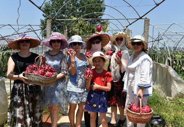 虽然烈日当空,但还是阻挡不了“吃货”们的热情,不少市民慕名前来采摘。“火龙果吃过很多,却不知道火龙果树长这样,远处看还以为是仙人掌。”前来采摘的岳阳市民刘女士和朋友带着孩子们上午十点多就从市区赶到了这里,她们提着篮子、拿上剪刀,钻进大棚,干脆麻溜地从枝条“卸”下身穿铠甲的“红胖子”,一会儿功夫便满载而归。