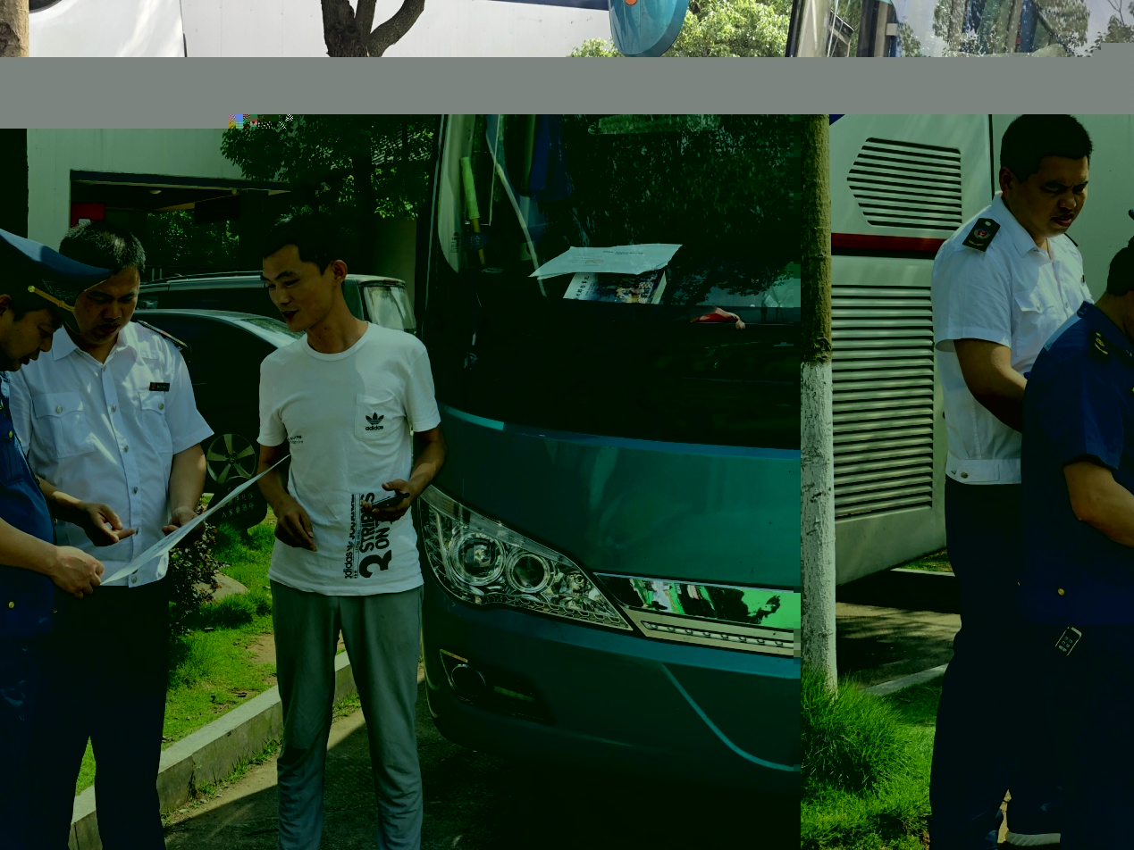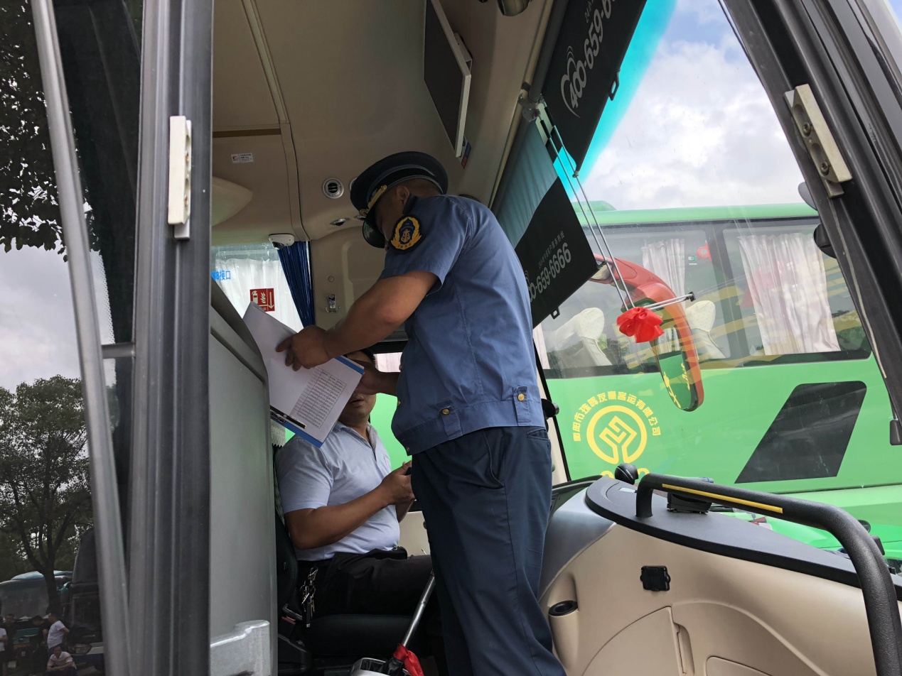 长沙、宁乡旅游交通联合执法组人员对旅游客运车辆和旅游团队秩序情况进行检查。