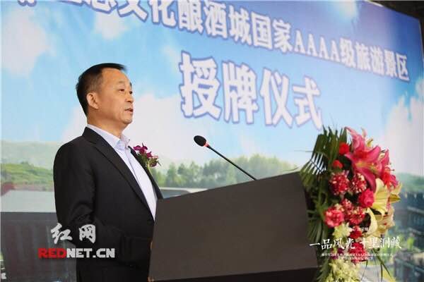 仪式上,湖南省旅游发展委员会规划财务处调研员夏阳春宣读了国家AAAA级旅游景区批复文件,并为湘窖生态文化酿酒城授牌。邵阳市人民政府副市长彭华松表示,湘窖生态文化酿酒城 “国家AAAA级旅游景区”授牌,是邵阳市经济社会事业发展中的一件大事,也是邵阳市旅游事业发展中的一件盛事。