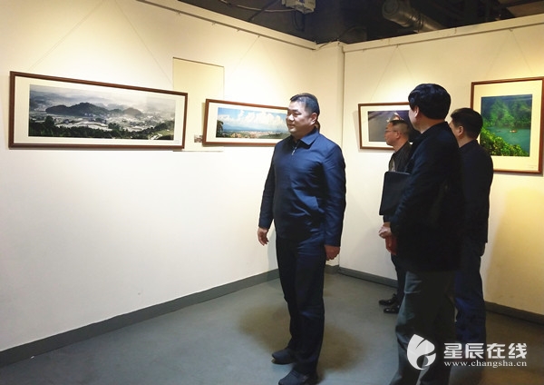 (推介会后,参会嘉宾在在长沙简牍博物馆内观赏名家书画摄影作品。均由星辰全媒体记者谭芳 摄)