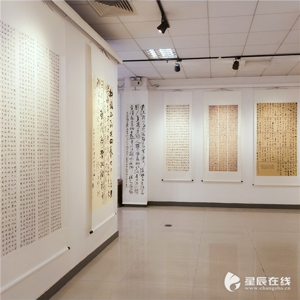 (“以书画镌刻人文底蕴,用镜头定格大美桃江”简牍博物馆内名家作品荟萃,参展的近500幅作品全方位地向世人展现了大美桃江。)