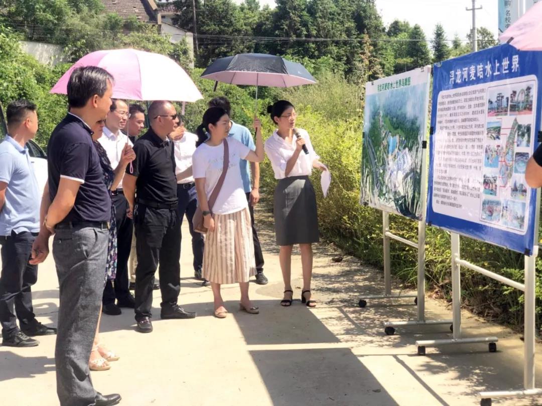 调研组一行先后前往浔龙河生态艺术小镇、浔龙河水上乐园项目和新明村山河健康谷项目听取项目负责人关于项目建设的情况汇报,并实地查看了各项目的建设情况。随后,调研组还就长沙县全域旅游开发建设情况召开座谈会。