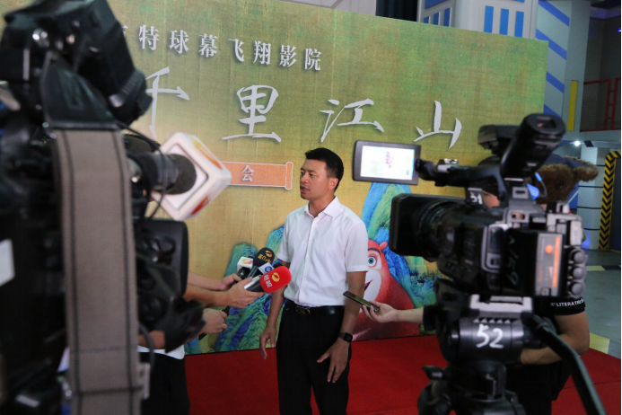 2018年 8月11日,株洲方特欢乐世界中国画主题球幕影院游乐项目《飞越千里江山》正式投入运营。《千里江山图》是北宋天才画家王希孟所作,系中国青绿山水画的代表之作,亦是中国十大传世名画之一,至今只公开展出过5次。2017年,北京故宫博物院《历代青绿山水画特展》上首次以全卷的形式对外展出,一经展出备受关注。为了再现文化瑰宝,讲好中国故事,振兴民族文化自信, 来自华强方特集团 300多人的数字技术团队潜心研究,深入挖掘传世名画的精髓之处,仔细分析中国传统绘画的勾勒、皴染技巧,经过长达一年的努力,从线稿、三维模型到上色再到立体呈现,每一步都竭尽全力,做到忠于原作。独创“飞行观画”模式,真正实现“人在画中游”。