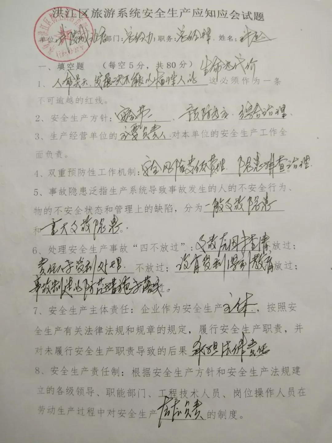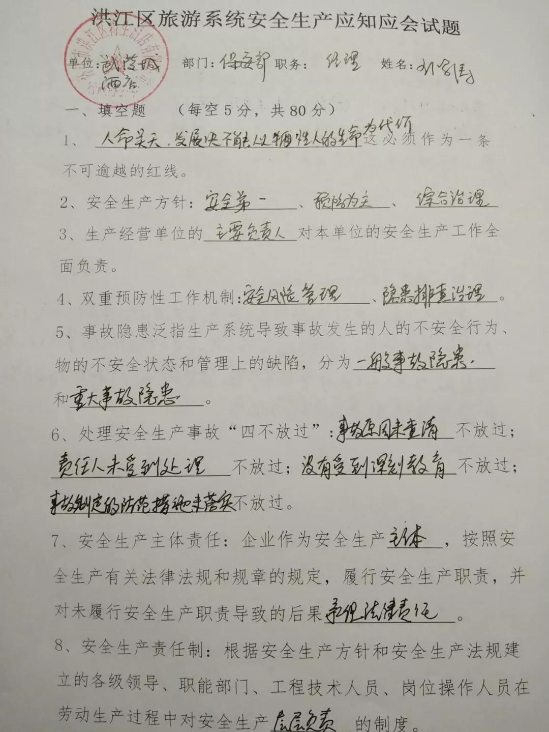 洪江区旅游局组织涉旅企业开展安全生产应知应会知识测试