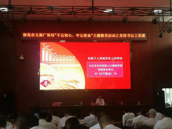 选举议程完成后,姚团为全体参会党员代表上了一堂以《不忘初心、牢记使命》为主题的党课。课程系统地阐述了建国70周年以来全国、全省及怀化所经历的沧桑巨变和取得的辉煌成就。通过听课,使大家进一步明白,中华民族之所以能够实现从站起来、富起来到强起来的伟大飞跃,靠的就是党的坚强领导。70年的发展经验十分珍贵,70年伟大实践充分证明,必须毫不动摇的坚持党的领导,增强“四个意识”,坚持“四个自信”,做到“两个维护”。只有高举中国特色社会主义伟大旗帜不动摇,坚持和推进改革开放才能在党的正确领导下创造新的历史。