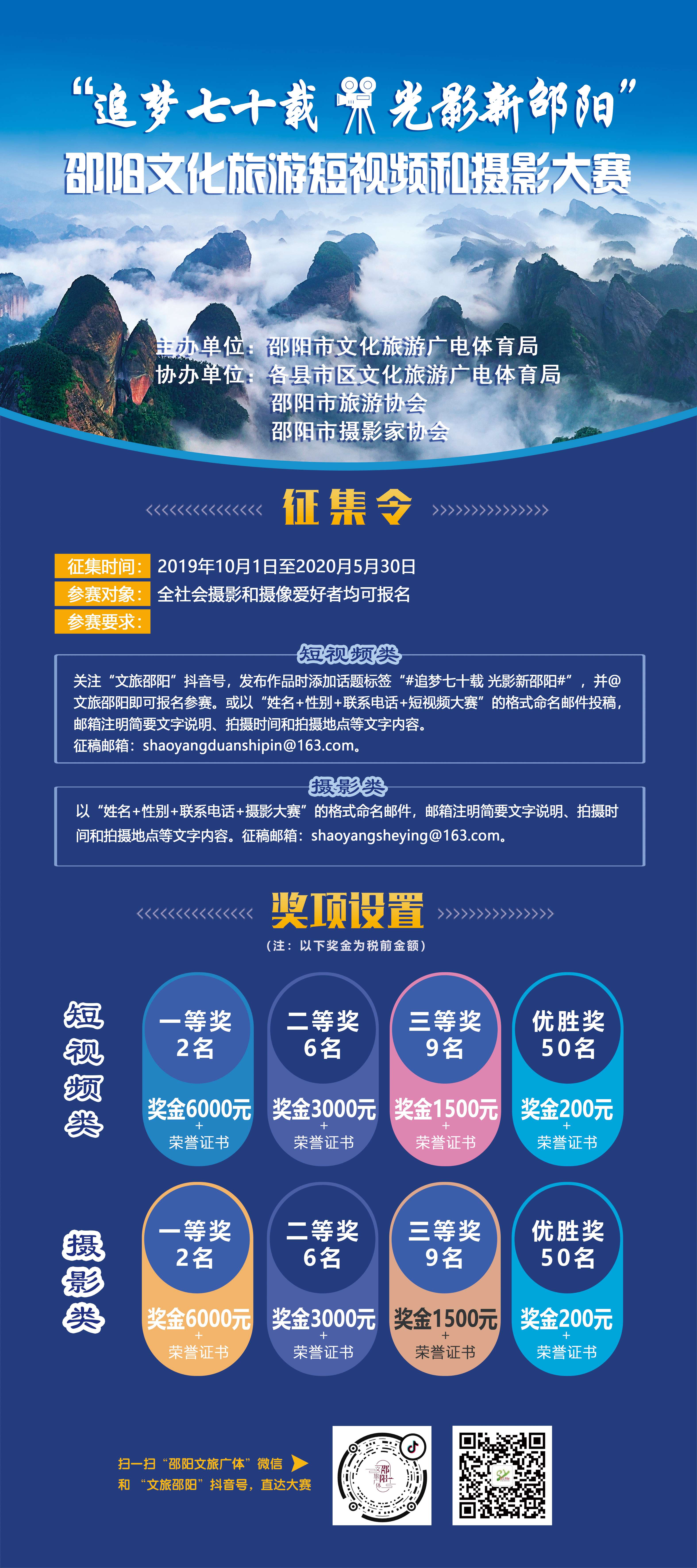 拍大片、“抖”出创意,十万元奖金等你挑战! 邵阳文化旅游短视频和摄影大赛火热启幕