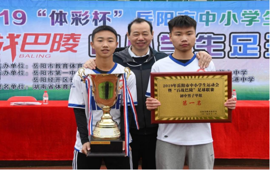 12月1日启明中学足球队在岳阳市“百战巴陵”中小学运动会初中男子甲组足球比赛中,在此蝉联冠军!连续第三届勇夺冠军!